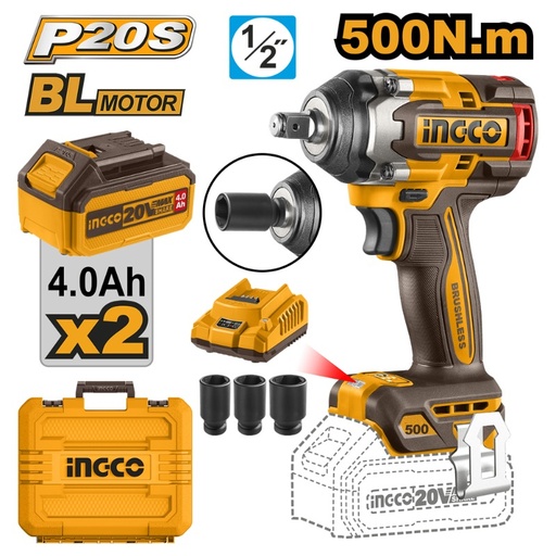 LLAVE IMPACTO 500Nm 1/2 20V 2 BAT 4,Ah INGCO (CIWLI2050)